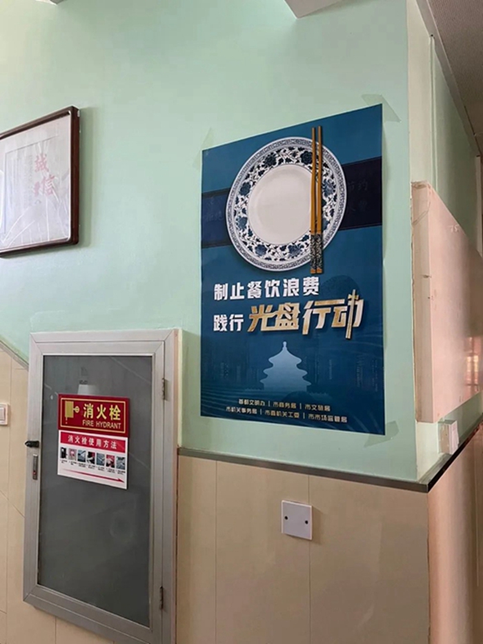 学校食堂往往成为食物浪费的重灾区。为保证垃圾从源头实现减量,技师学院双管齐下,一方面,食堂负责人积极听取学生意见,组织学生代表参观食堂厨房、为菜品质量提升工作献言献策,从供给端减少食物浪费现象;另一方面,学院继续推进光盘行动常态化工作,加大宣传力度,由志愿服务队在用餐时段进行疏导,让“光盘”理念深入人心。