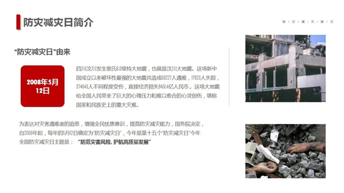 在第15个“5·12全国防灾减灾日”到来之际,北京化工集团按照党中央、国务院、北京市委市政府部署的工作要求,以“防范灾害风险,护航高质量发展”为主题,深入开展防灾减灾宣传,以增强全系统干部职工安全忧患意识,提高防灾减灾及应对能力。