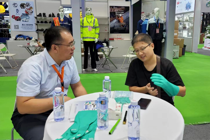 就在参展广交会前,公司携“雪莲”牌丁腈牛筋手套等新产品参展了在山东烟台举办的以“安全、健康、可持续”为主题的第105届中国劳动保护用品交易会。