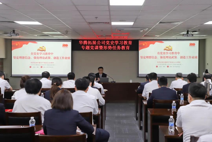 5月10日,北京化工集团总经理助理,华腾拓展公司党总支书记、董事长李泳以《在党史学习教育中坚定理想信念、强化理论武装、创造工作业绩》为题,向全体党员及职工代表讲授党史学习教育专题党课。