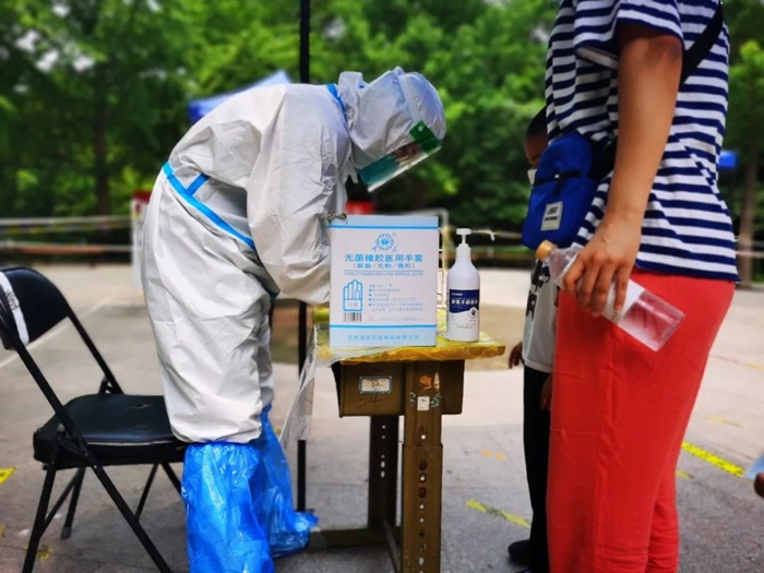 5月16日早上7点半, 我提前半小时来到通州区中仓社区报到,因为第一次参与到核酸检测工作,还比较忐忑,不知道自己能否干好。在与社区负责人对接后,进行了简单的岗前培训,跟随着大家一起布置场地,在社区工作人员的耐心指导下,从开始时维持秩序、保障绿色通道这样简单的工作,到后来我已经能够独立完成身份信息采集、对所采集的样品进行开箱和封箱、帮助检测替换下来的医生进行消毒,并在检测完成后收集场地内的物品,清理、消毒医疗垃圾等诸多工作,一系列工作我一气呵成,他们都夸我是“检测小能手”。