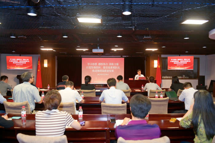 6月30日下午,北京化工集团总部党委书记刘峰以《学习思想、感悟伟力、汲取力量,打造坚强组织、建设高素质队伍,推进集团高质量发展》为题作专题党课报告。祝愿党永葆青春、风华正茂,向总部党员致以节日问候,激励总部党员同志要不忘初心,牢记使命,永葆活力,推动集团高质量发展。总部党支部书记、支委、党小组长参加党课学习。