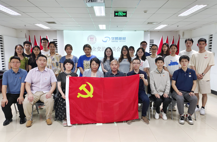 在深入开展学习贯彻习近平新时代中国特色社会主义思想主题教育之际,6月19日,中国人民大学理学院党委书记冯诗松带领老师学生代表一行14人赴华腾新材公司交流调研,华腾新材公司党总支书记齐小丽、总工程师崔正、董事会秘书金东旭及相关部室负责人接待冯诗松一行。
