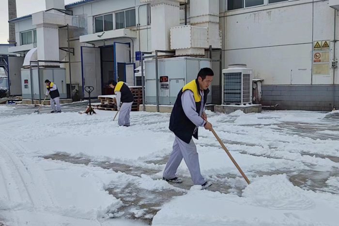 为保障职工上下班安全,华腾橡塑加强铲冰除雪运行调度,确保道路保持畅通,职工交通安全。12月15日上午,公司各科室人员对厂区道路积雪进行了清除。大家不畏寒冷,纷纷拿起铁锹、扫帚等工具,清理道路。经过1个多小时的努力,疏通了从厂门到办公楼、车间、食堂的几条关键道路。