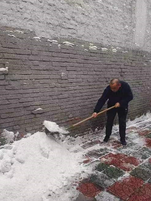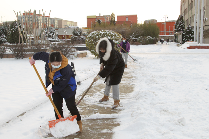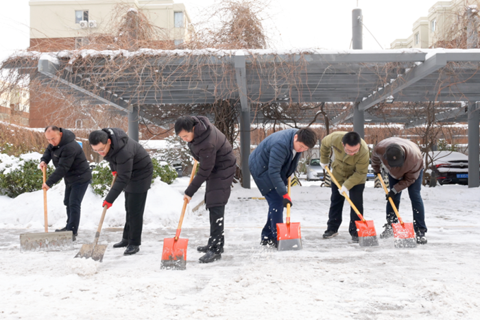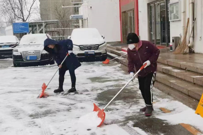刚到单位的干部职工,纷纷拿起扫帚、铁锹,加入到扫雪除冰大“会战”的队伍中。大家齐心协力、现场一片热火朝天,干净整洁的道路很快清扫出来,保证了干部职工出行安全。