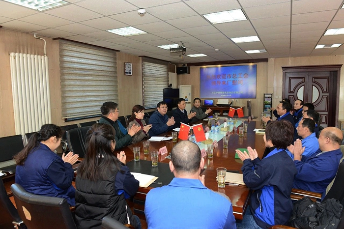 1月13日下午,北京市总工会党组成员、副主席韩世春,北京市工业(国防)工会副主席李新莲一行来到北化集团所属华腾橡塑公司生产现场走访慰问困难职工,为他们送上节日的祝福与关怀。北化集团党委副书记、工会主席吴瑞峰,总经理助理、华腾橡塑公司党委书记陈绍洲陪同慰问。