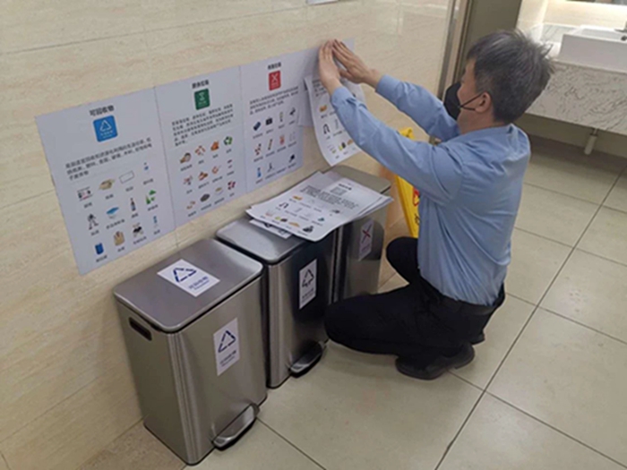 与此同时,华腾拓展还注重从源头抓起,明确管理责任。重点监督管理垃圾房,在垃圾投放过程中尽量减少二次分拣,建议租户由专人负责指导本单位员工按要求分类垃圾,垃圾桶需张贴本单位标识,杜绝投放黑色袋装垃圾,实现桶对桶转移运输,并做到垃圾日清。