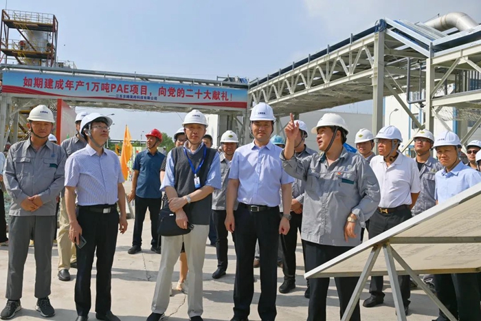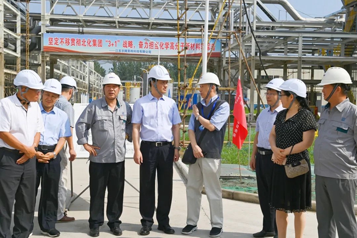 月19日,董事会一行来到江苏京腾昊桦公司,现场考察年产1万吨聚芳醚树脂(PAE)项目建设情况。PAE项目是国家强基工程项目,是北京化工集团推进“3+1”业务的重要载体,是集团年度40项重点任务之一。
