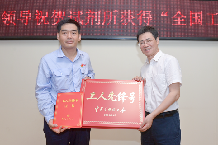 杨旭辉一行来到华腾科技园后,直奔职工一线,亲手将防暑降温物品送到职工手中,为他们“送清凉”。而后深入化工厂彩粉车间、分装车间,试剂所甲类车间,入驻园区的液流电池实验室项目,华腾化工甲类库等生产经营现场。深入了解华腾科技园现状及入驻企业情况,华腾科技园一体化方案推进实施成效,华腾科技园总体发展思路,特别是结合大兴区产业规划、集团生物医药孵育孵化及智造“北化模式”、危化品安全监管与高质量发展实施方案的发展思路,华腾天海公司总体工作情况等,要求园区企业从市级、大兴区区级、集团公司3个层面,从生物医药、危化品安全服务、化工新材料3个产业方向落实园区定位,进一步落实园区功能整合、企业梳理及组织整合,另对全面履行安全生产主体责任,提升园区服务能力水平等工作进行具体部署。杨旭辉还向荣获“全国工人先锋号”的试剂所质量检验部颁牌,并向他们表示热烈祝贺。