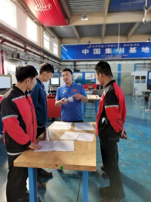 和王展超经历相似,韩方旭,机电一体化专业技师毕业后,也选择了留校任教,反哺母校教育事业。他们精心培养的选手殷成浩、谢虎、王帅等,不负众望,在世界技能大赛上屡创佳绩。数控车选手王帅在43届世界技能大赛中获优胜奖,机电一体化选手殷成浩、谢虎在45届世界技能大赛中获银牌。他们继承了导师的衣钵,选择留校,继续培养世赛选手。
