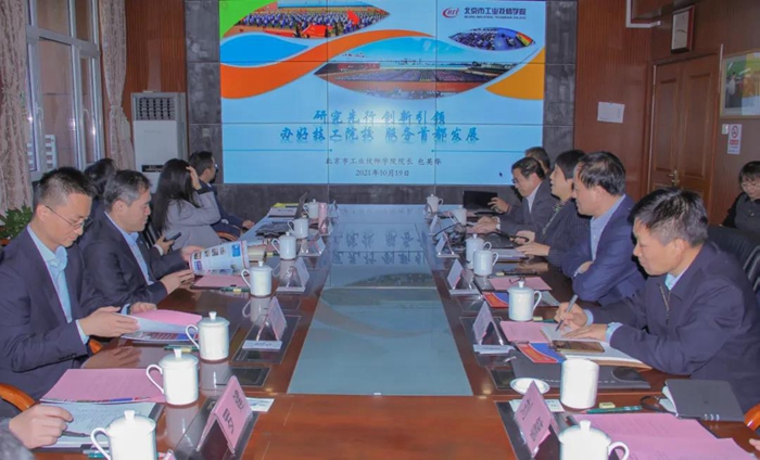10月19日上午,中化环境公司党委书记、董事长、总经理崔焱一行9人慕名来到北京市工业技师学院,参观了解学院丰硕办学成果,与北京化工集团、学院共商培训合作事项,北京化工集团党委书记、董事长王国华,党委副书记吴瑞峰及相关部室负责人,技师学院相关领导、教师一同参观、洽谈。