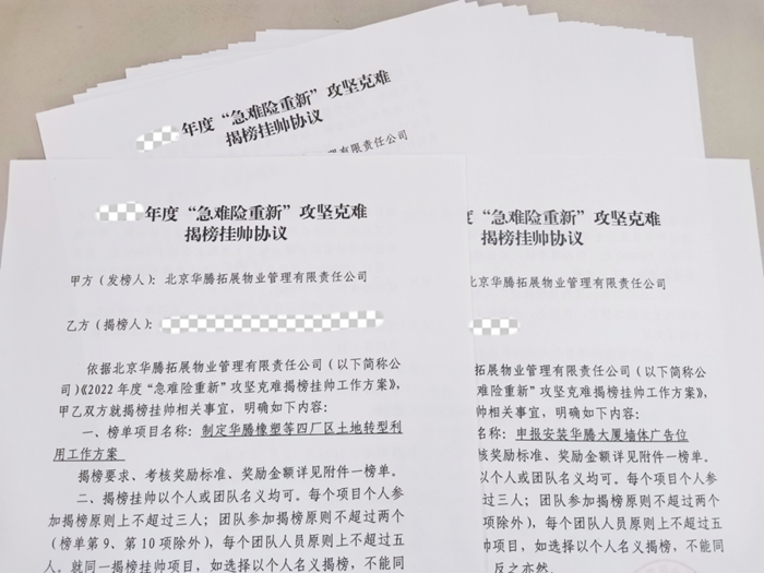 在华腾拓展年初开展的急难险重新“揭榜挂帅”活动中,华腾大厦团队所揭的榜,直指大厦写字楼经营开发的“痛点”“难点”。面对任务明确、目标清晰的榜单,这个团队心中有压力,但更有干劲儿和冲劲儿。“好像前面有一座堡垒,你的任务就是攻下它!”大厦员工说,“乐鱼 得想办法,老办法不成,就得想新办法、出新招,现在乐鱼 都在围绕揭榜转,团队的积极性都给调动起来了。”